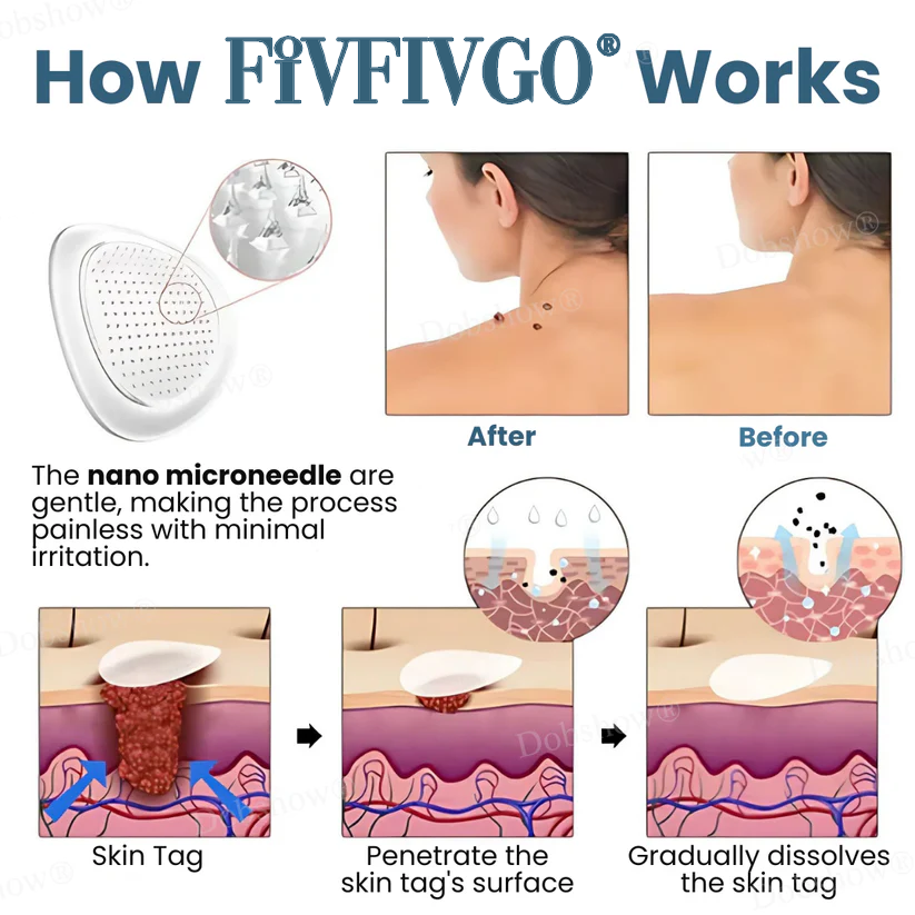 Safe & Expert-Tested  Fivfivgo® Pro TagsGone Multi-Pattern Patches are dermatologist-approved and rigorously tested to ensure safe, effective removal of warts, moles, and skin tags. Our advanced, gentle formula is designed to work on all skin types, providing powerful results without causing irritation, pain, or scarring. You can trust Fivfivgo® for smooth, clear skin every time.