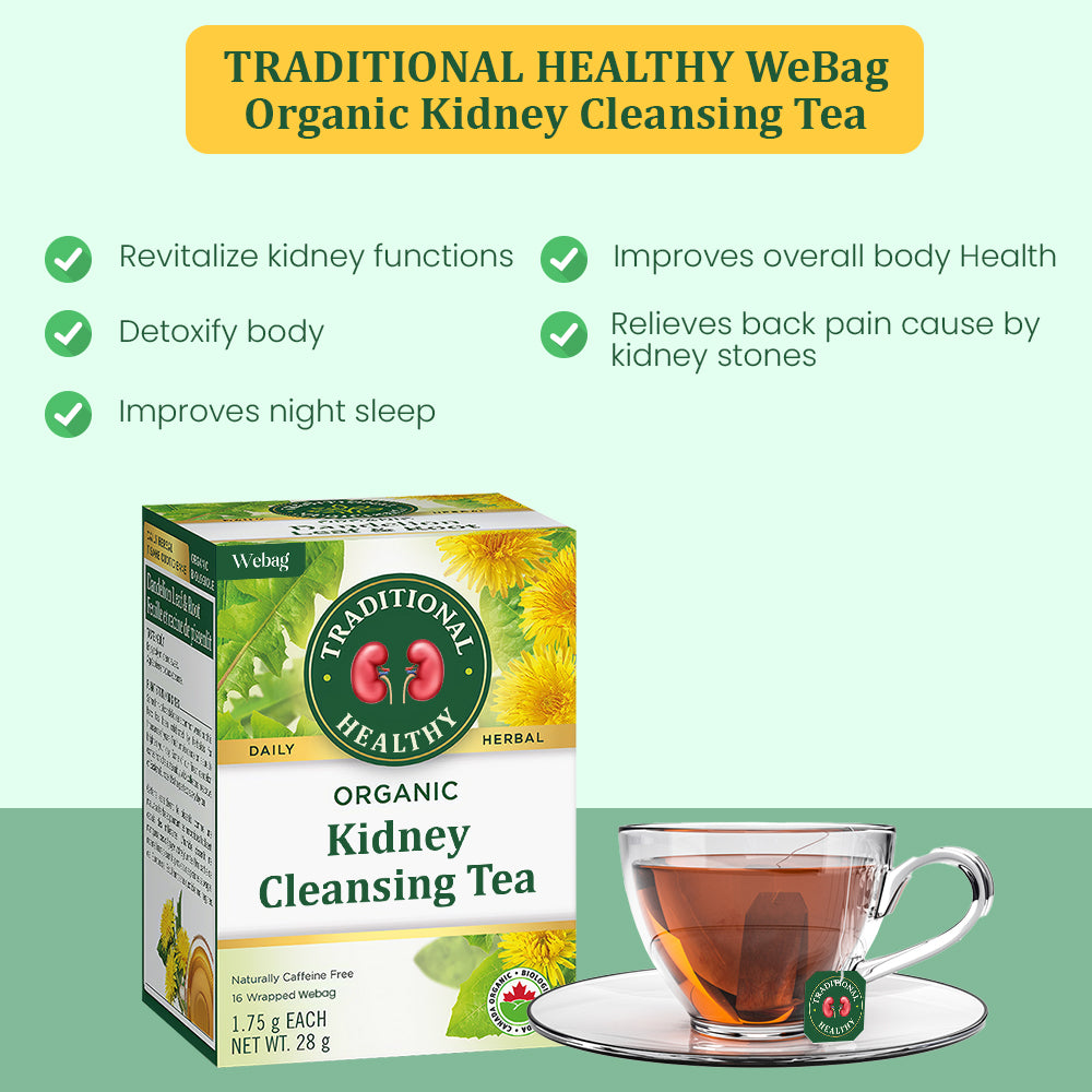 - TRADITIONAL HEALTHYâą Organic Kidney Cleansing Tea (16 Wrapped Bags)Â